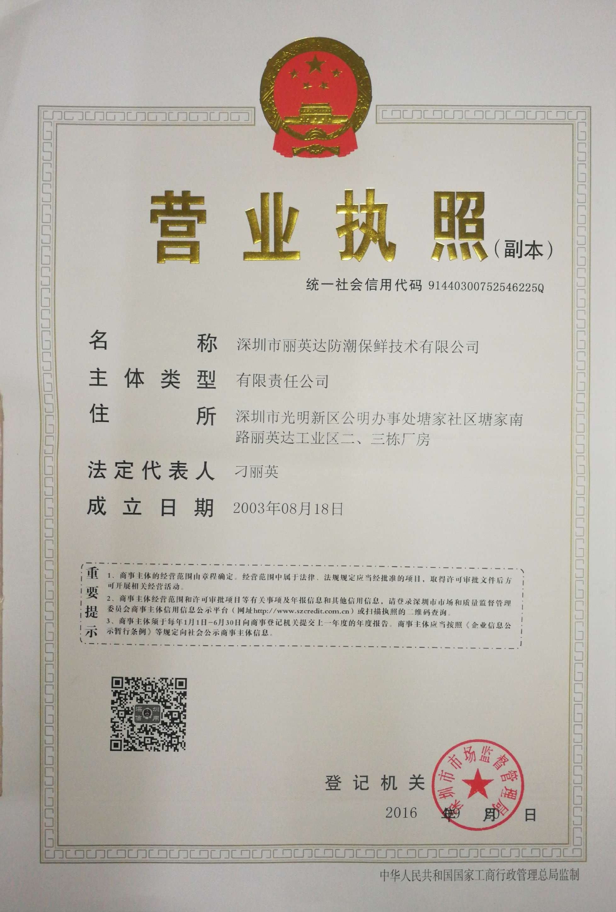 深圳市麗英達防潮保鮮技術有限公司
